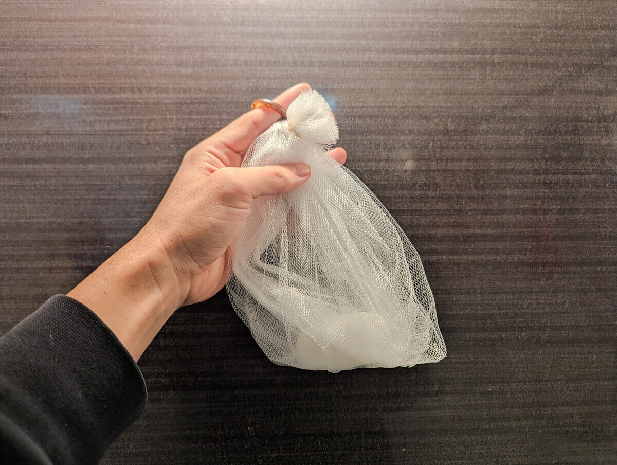 固形石鹸を入れたまま使うタイプの泡立てネット。何の変哲も特徴もなくみえますが、この商品はとにかく頑丈で、1年以上使い続けています。