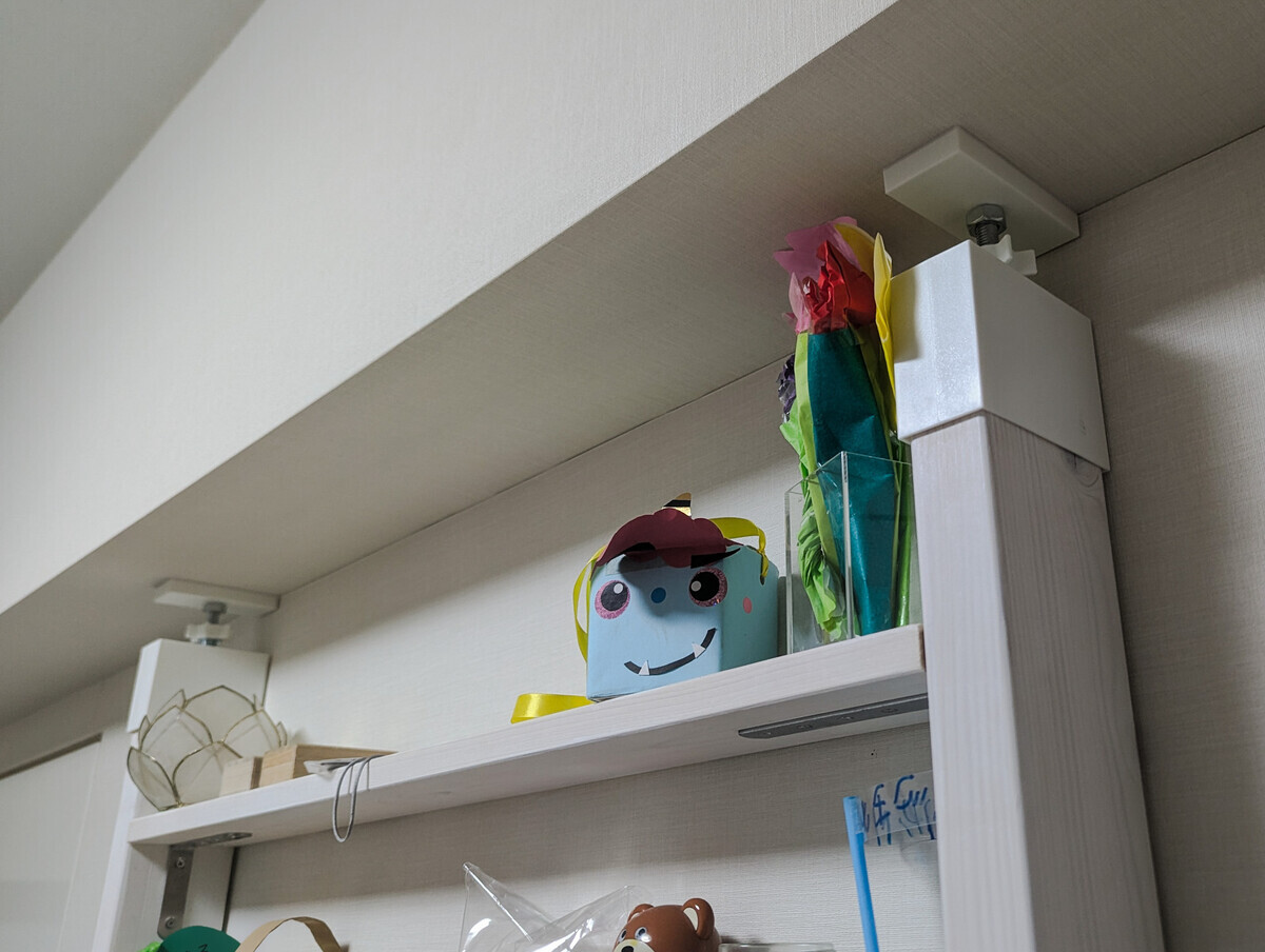 2×4の木材を天井と突っ張ることで固定する部品。昨年、育休中に棚などをいくつかDIYしたのですが、たいていはこのLABRICOを使って作りました。
